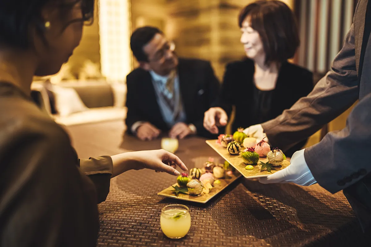 オリジナルフードとドリンクで挙式前からしっかりと ゲストの皆様をお迎え。世界水準のサービスで叶える洗練されたおもてなし